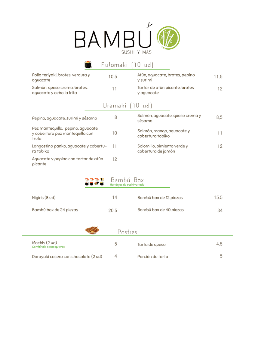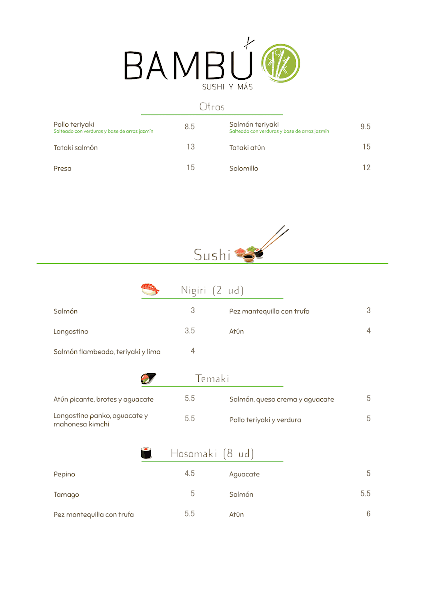 Overall, Restaurante Japonés - Bambú offers an incredible array of dishes that combine traditional Japanese flavors with fresh, high-quality ingredients. Whether you're in the mood for sushi, sashimi, or a warm wok, there's something to please everyone on their menu.